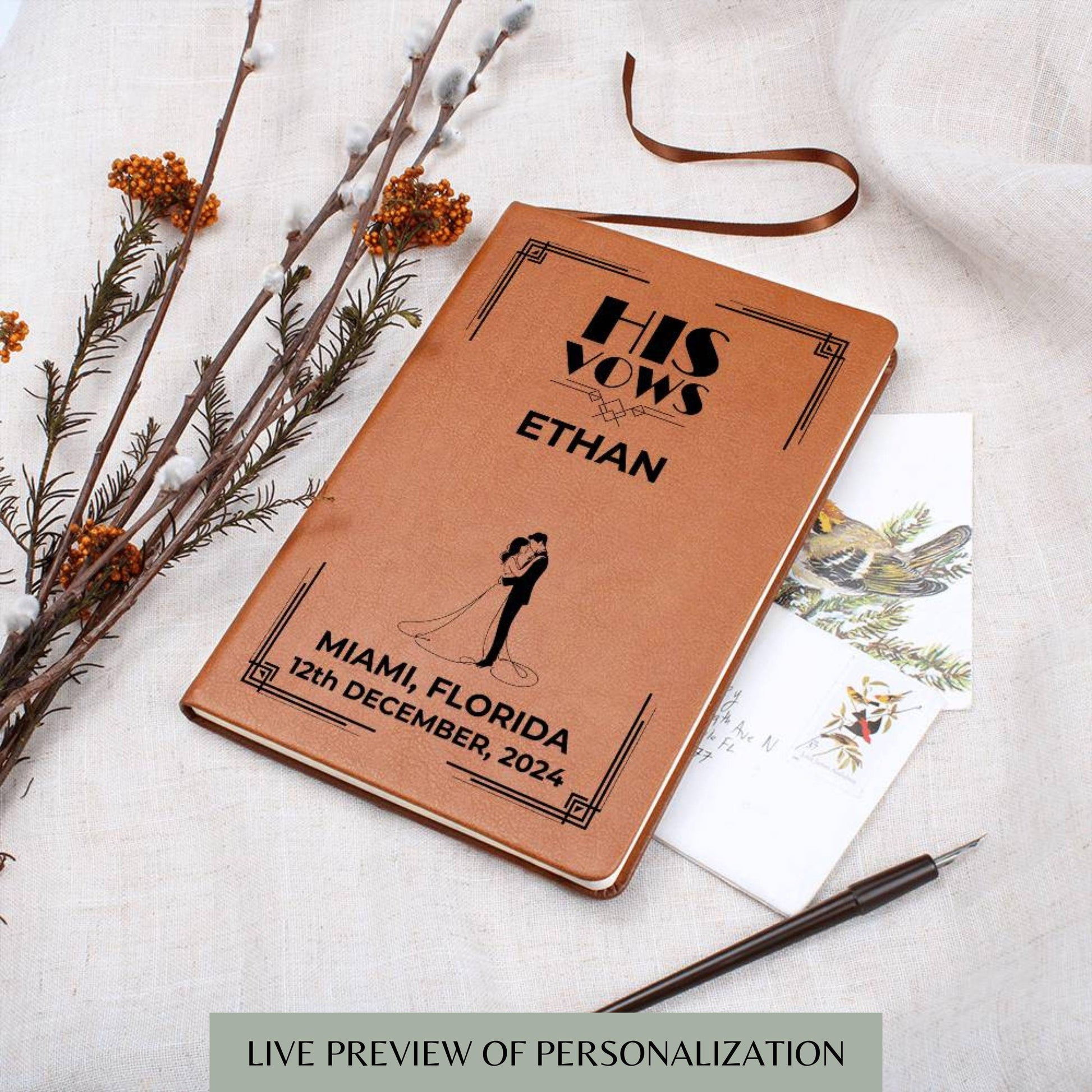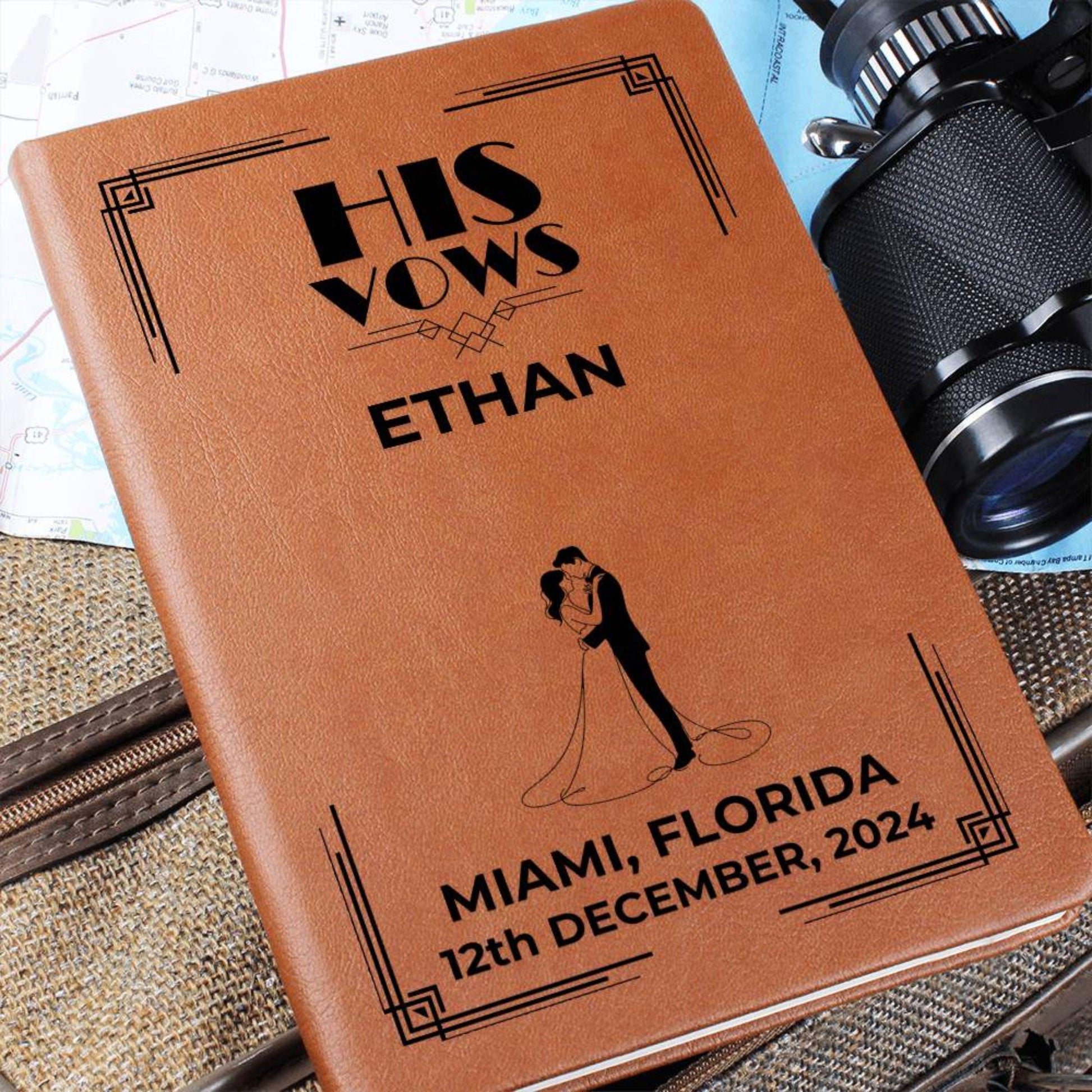 Art Deco Personalized Wedding Vow Book Leather - His Vows Journal, Custom Vow Books, Wedding Personalized Vows Gift, Vow Book Leather Gift