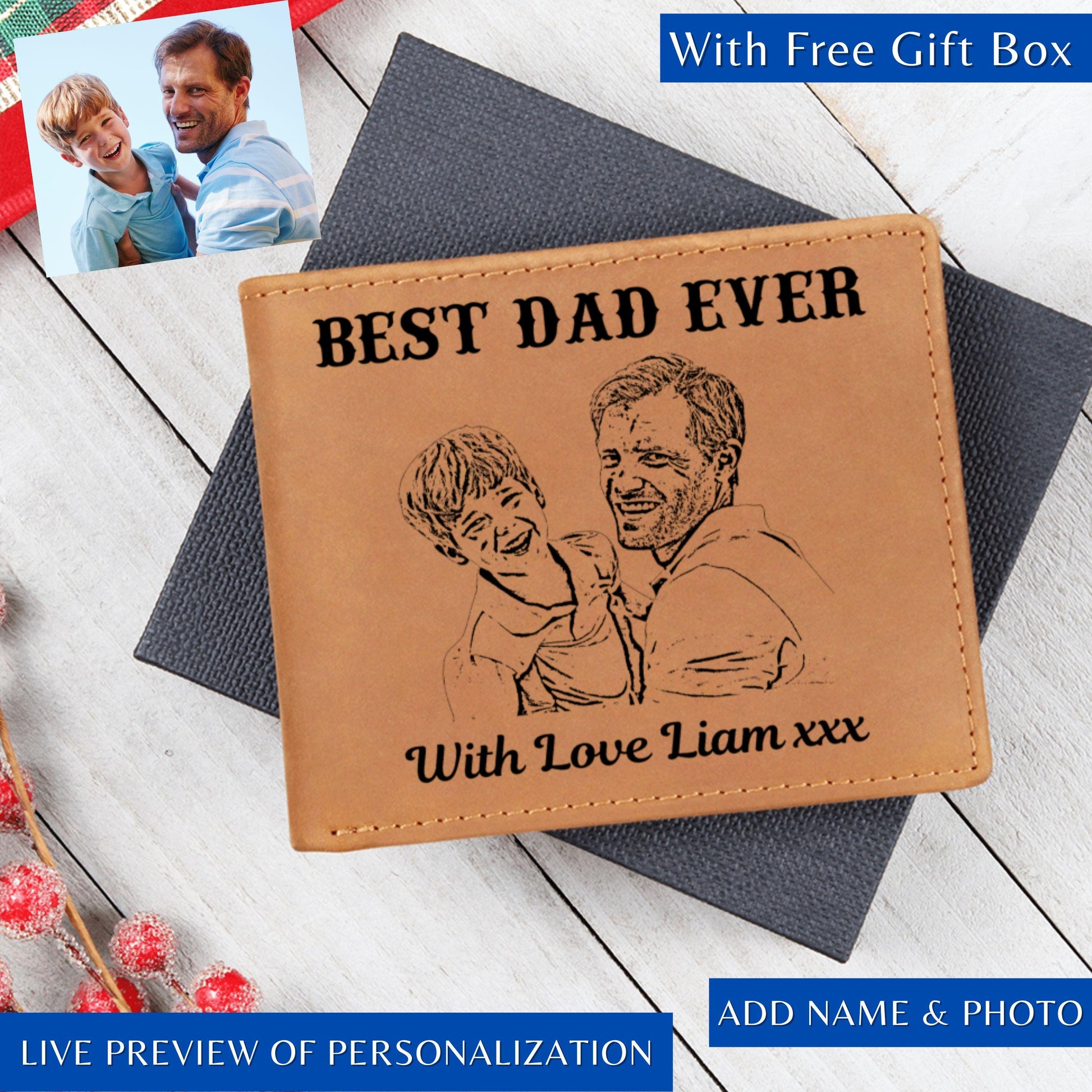 Custom Photo Wallet For Dad in Gift Box Personalized Leather Wallet with Picture Best Dad Ever Gift Fathers Day Gift Bifold Wallet For Dad