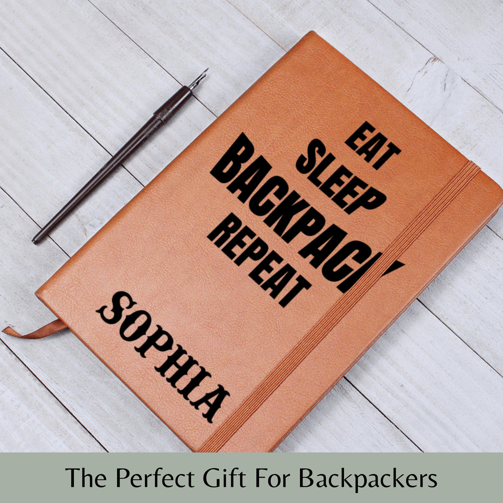 Eat Sleep Backpack Repeat Aesthetic Travel Journal Personalized Name Gift for Hikers Backpackers Gap Year Girls Adventure Notebook for Her