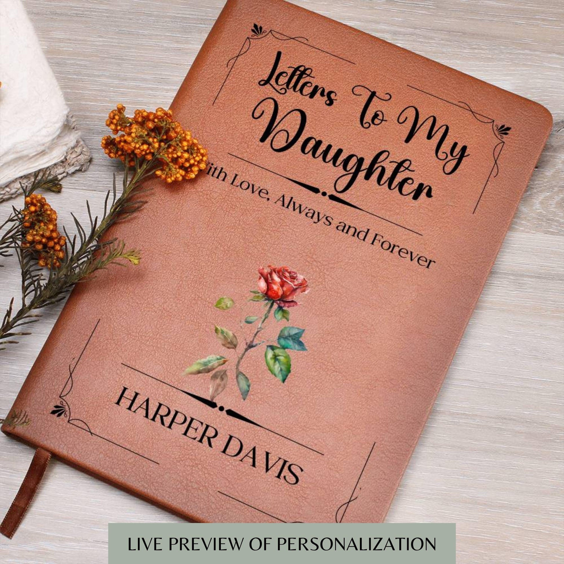 Letters To My Daughter Personalized Leather Journal, Birth Flower Teenage Daughter Gift Daughter Keepsake Journal Mother Daughter Gifts