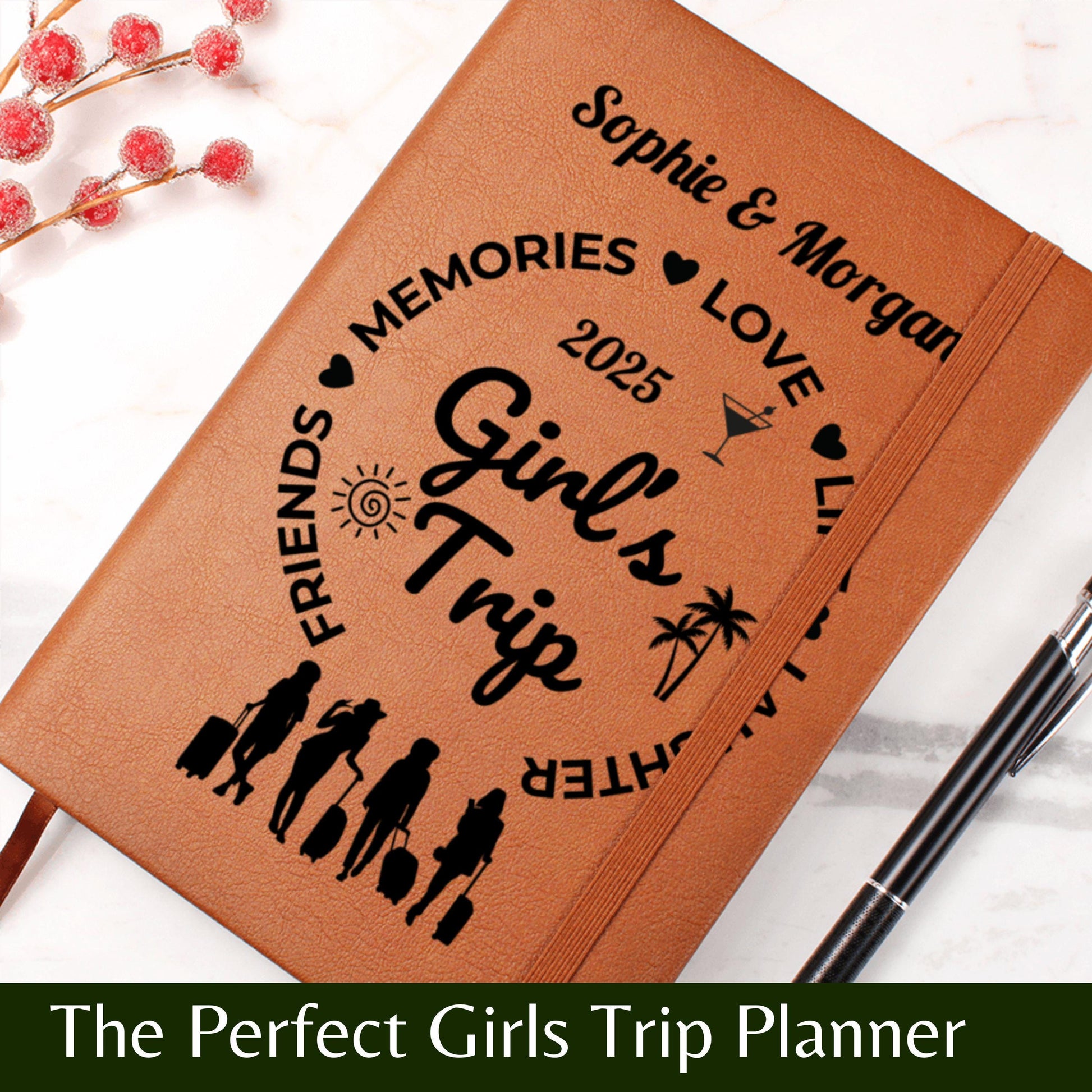Capture every laugh, selfie and unforgettable moment with this stylish girls trip journal. Designed for besties who love to explore together, this custom notebook is a fun and meaningful way to document your journey from start to finish.