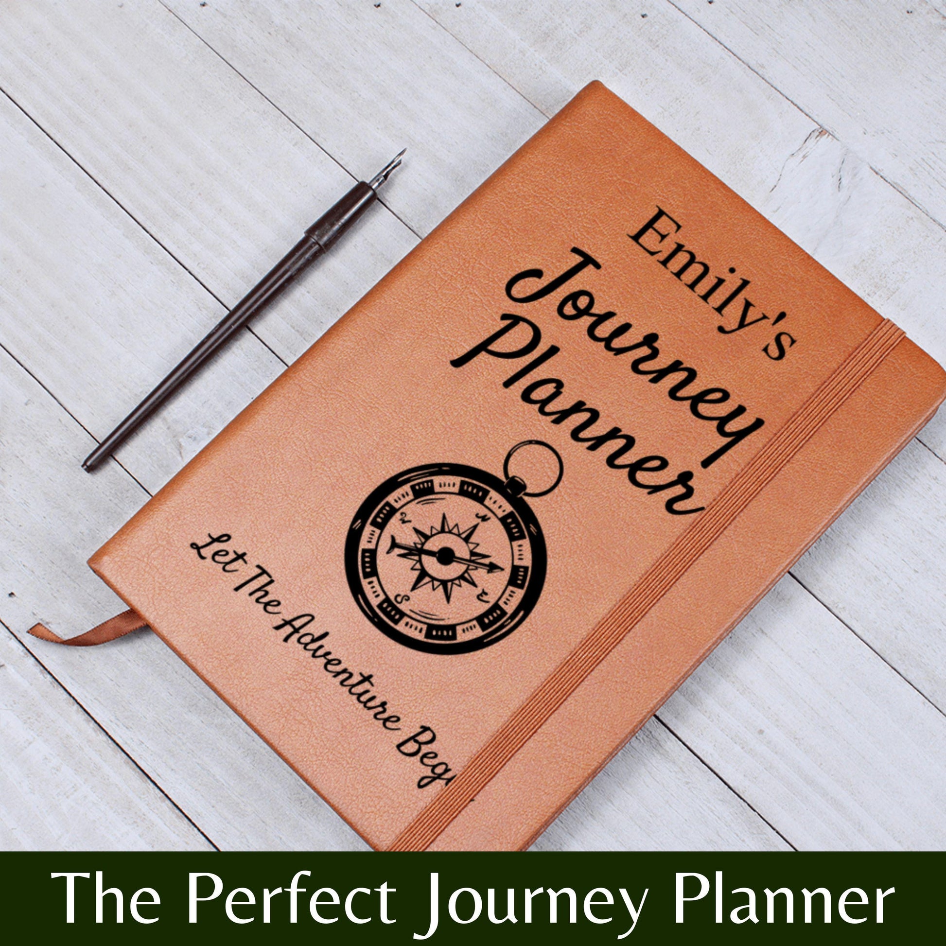 Capture the moments that matter with this custom leather journey planner. Printed with your name, this elegant vegan leather journal is perfect for documenting travel, personal growth, life goals or reflections along the way. Whether you're starting a new chapter or embarking on an adventure, this keepsake is designed to go with you.