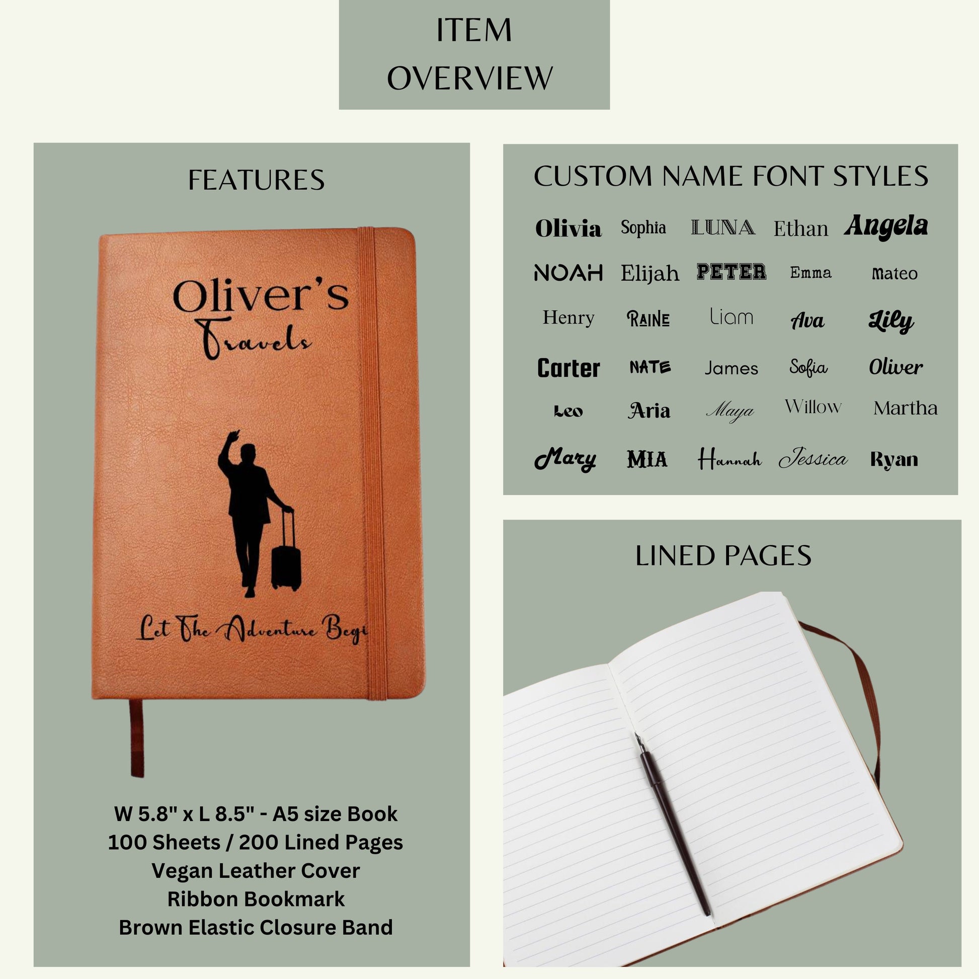 Personalized Leather Travel Journal For Men, Travel Gift For Him, Travel Notebook, Travel Gift, Leather Journal, Travel Diary Travel Planner
