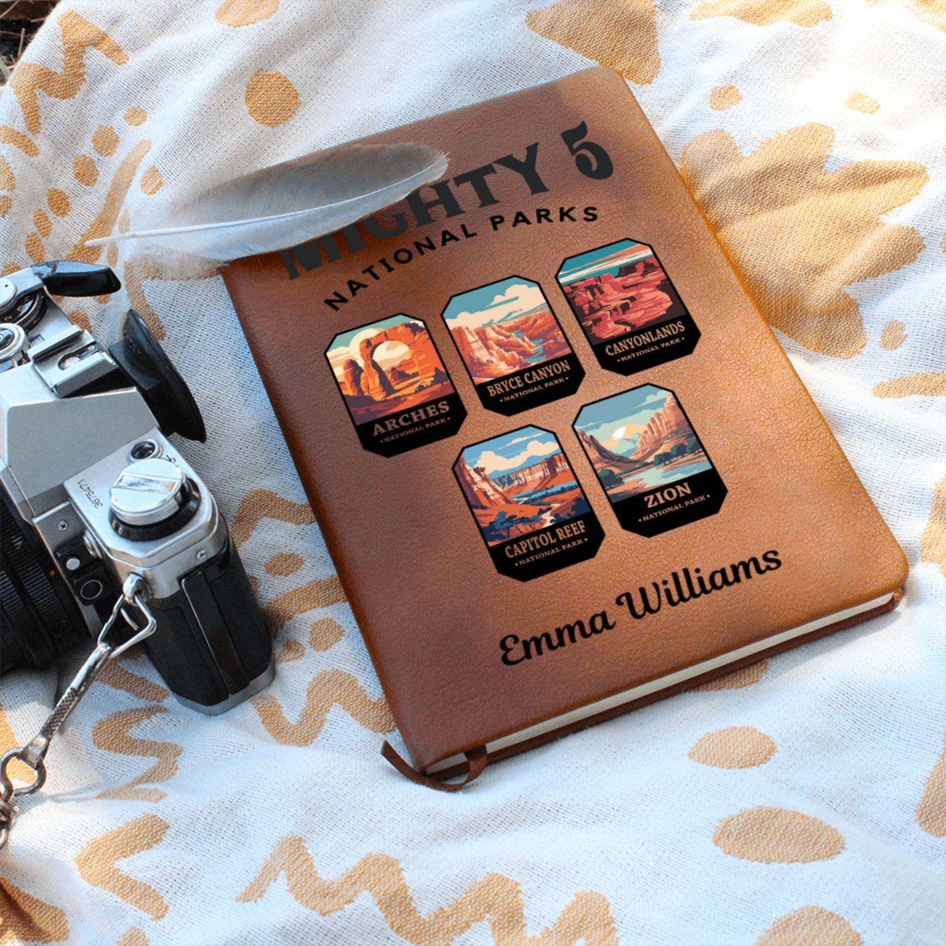 Personalized Mighty 5 National Parks Leather Journal – Utah Road Trip Gift for Hikers, Campers, Outdoor Lovers & National Park Adventures