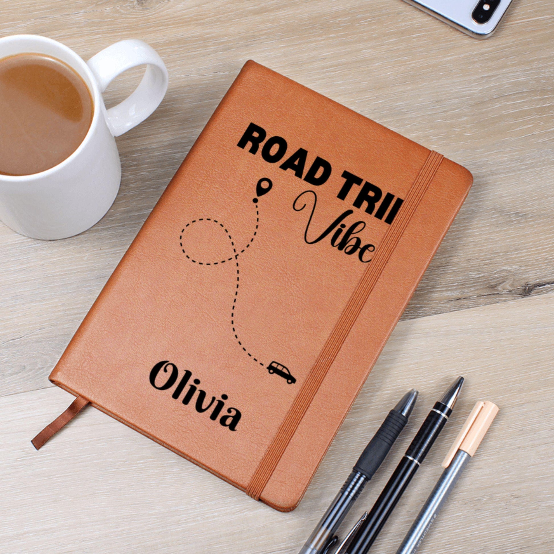 Personalized Road Trip Vibes Leather Journal Custom Travel Diary Adventure Notebook Travel Memory Book Gift for Traveler Road Trip Log Book