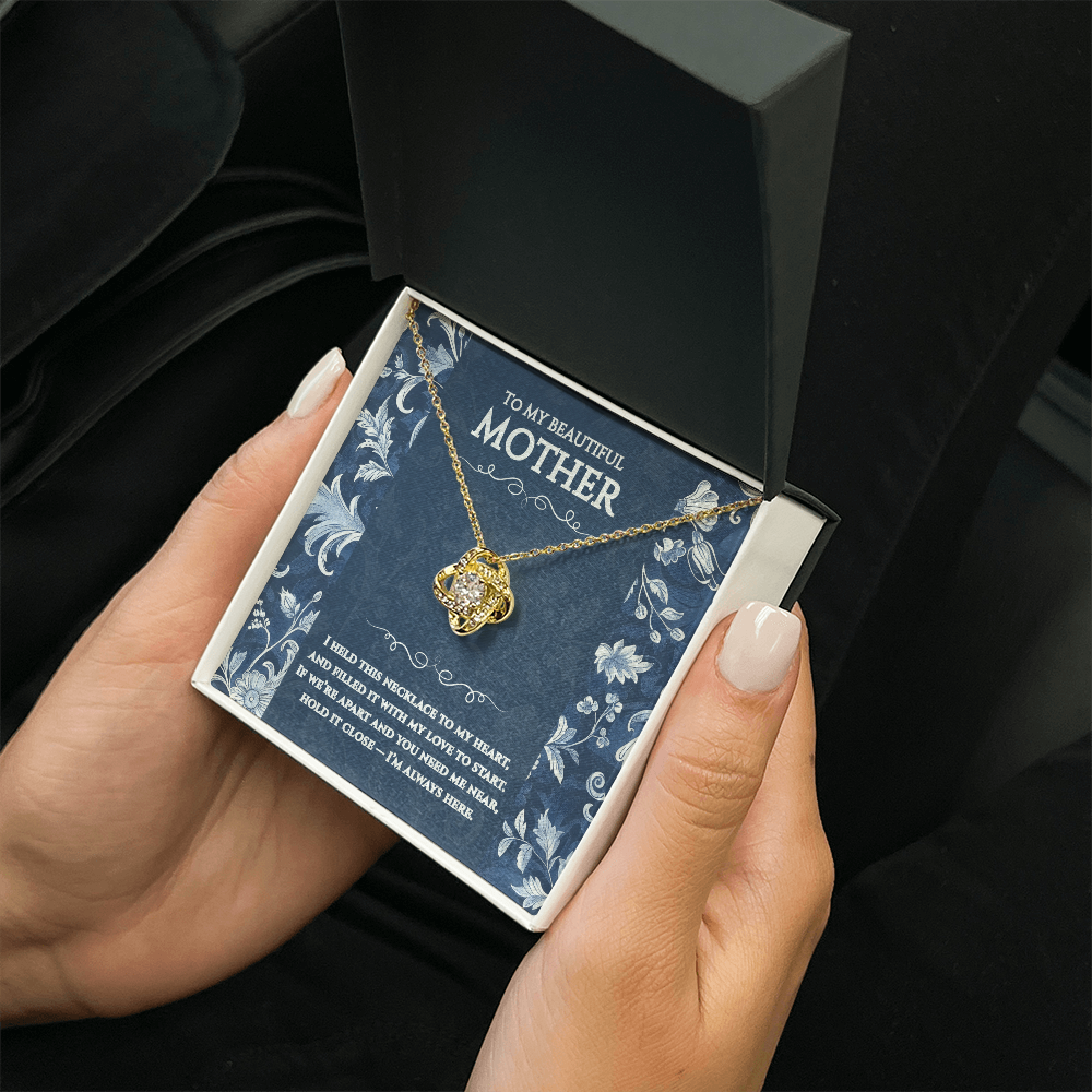 To My Beautiful Mother - I held this necklace to my heart, and filled it with my love to start. If we’re apart and you need me near, hold it close — I’m always here.